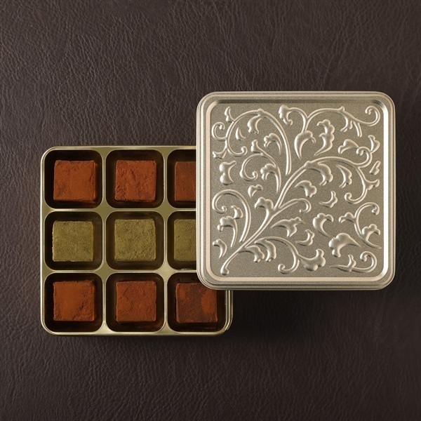 伝統の唐草文様が浮かび上がる素敵な缶に、ベルギー産のクーベルチュールチョコレートと